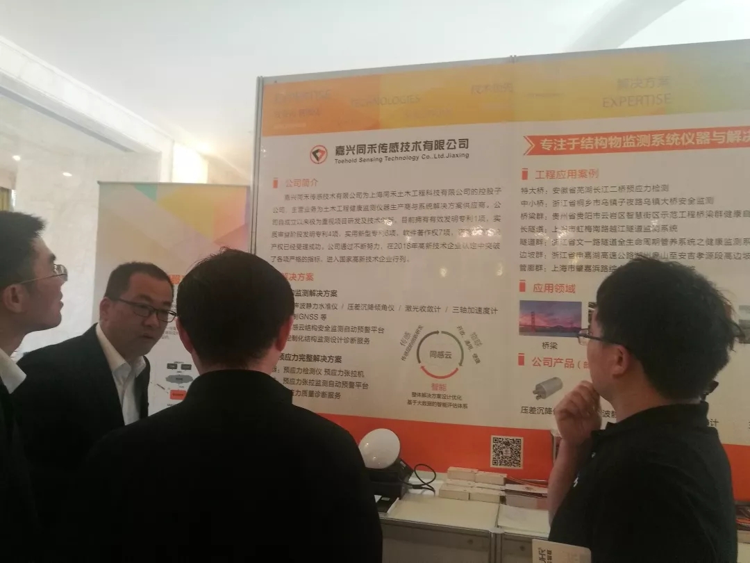 本次会议上, 展示了桥梁预应力质量完整解决方案和“同感云”安全监测系统解决方案并首次发布了中小桥梁健康监测解决方案。其中,为了更好的展示“同感云”安全监测系统,我们还带来了“同感云”演示平台,该平台集合了我公司自主研发的沉降倾角仪、三轴测振仪、裂缝计等部分监测仪器。另外,在本次会议上, 还首次发布了无需自建基站的动态厘米级、静态毫米级的北斗GNSS产品,该产品具有寿命长、易维护、可同时测量同一个点的绝对平面位置和高程的特点。 的产品吸引了诸多专家学者到展台参观与交流并得到多方的肯定。
