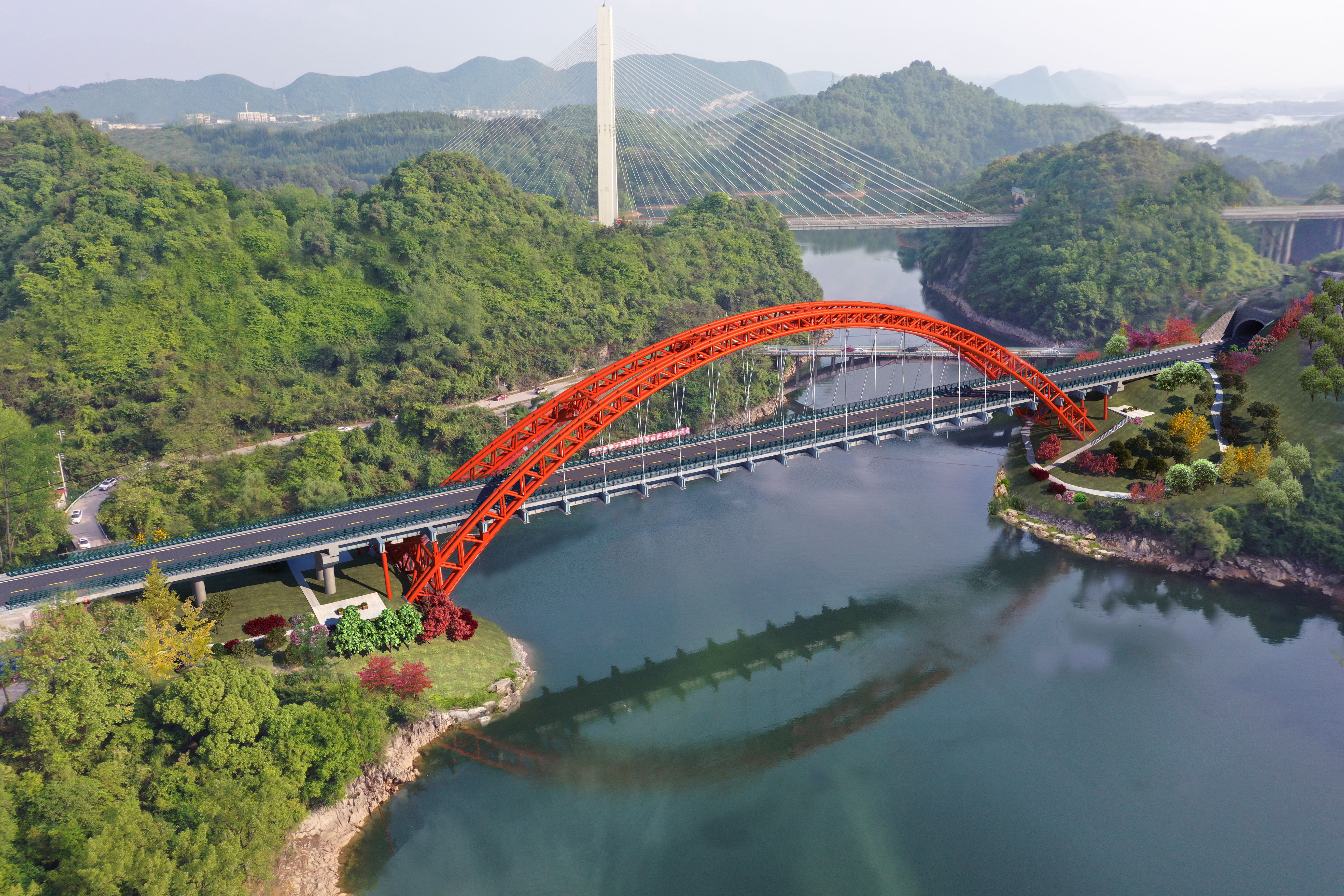 日前,贵州首座“提篮”式公路桥梁——G320线花鱼洞大桥被国际桥梁大会(IBC)授予古斯塔夫斯·林德撒尔金奖,这一奖项是用于表彰近期完成的世界范围内的优秀桥梁工程项目,被誉为桥梁界的诺贝尔奖。花鱼洞大桥位于贵阳至黄果树高等级公路清镇市内,是跨越红枫湖湿地公园及饮用水源保护区的一座特大桥梁。2019年,为提高服务水平和通行能力,将原主跨150米预应力混凝土桁式组合拱桥拆除重建为主跨180米中承式钢管混凝土提篮拱桥,新建桥梁全长269.6m,于2021年6月29日建成通车。