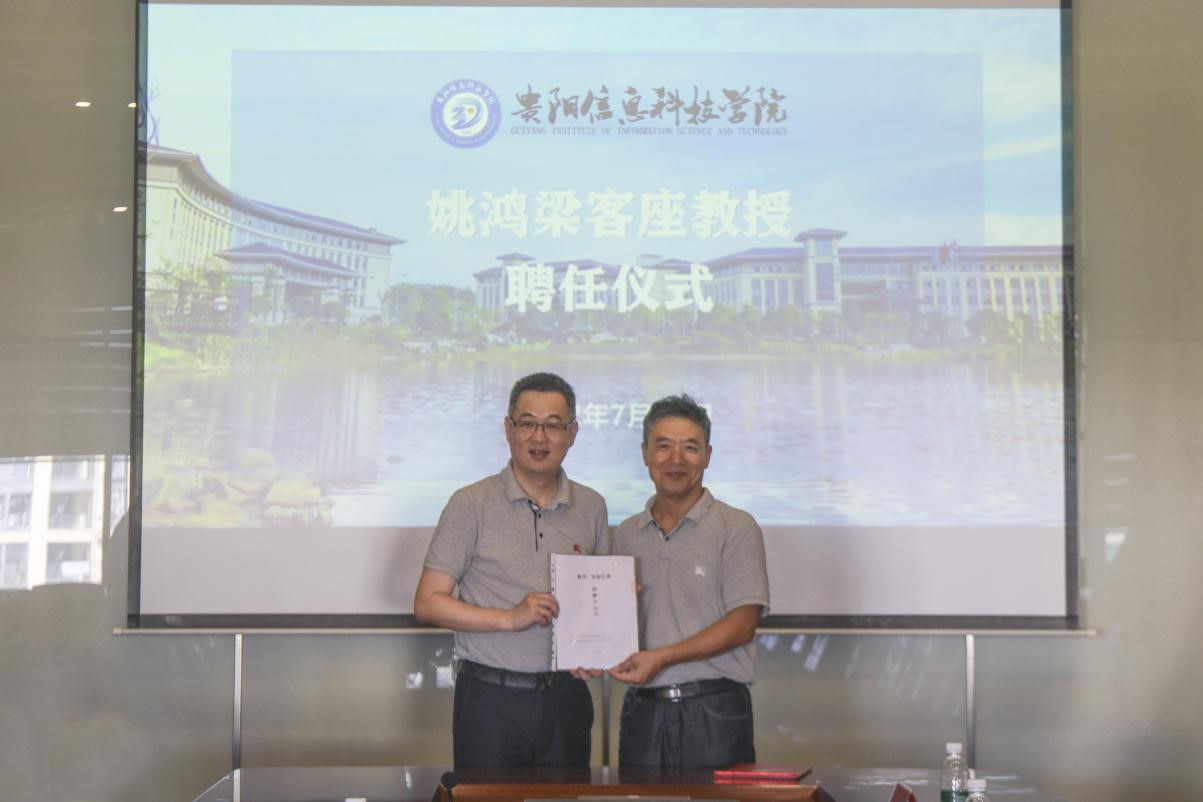 交流会上,校企双方签订了合作协议。同时,贵阳信息科技学院聘请姚鸿梁总经理为学校客座教授, 为助力学校教育教学特向学校捐赠了一套专业的检测仪器。