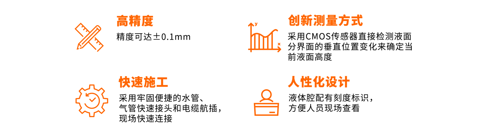 机器视觉静力水准仪内部配有CMOS线阵相机,通过CMOS传感器直接检测液面分界面的垂直位置变化来确定当前液面高度,平台间接算出结构物沉降。本产品安装于结构物表面,可应用于桥梁、隧道、建筑物等结构物的沉降监测。