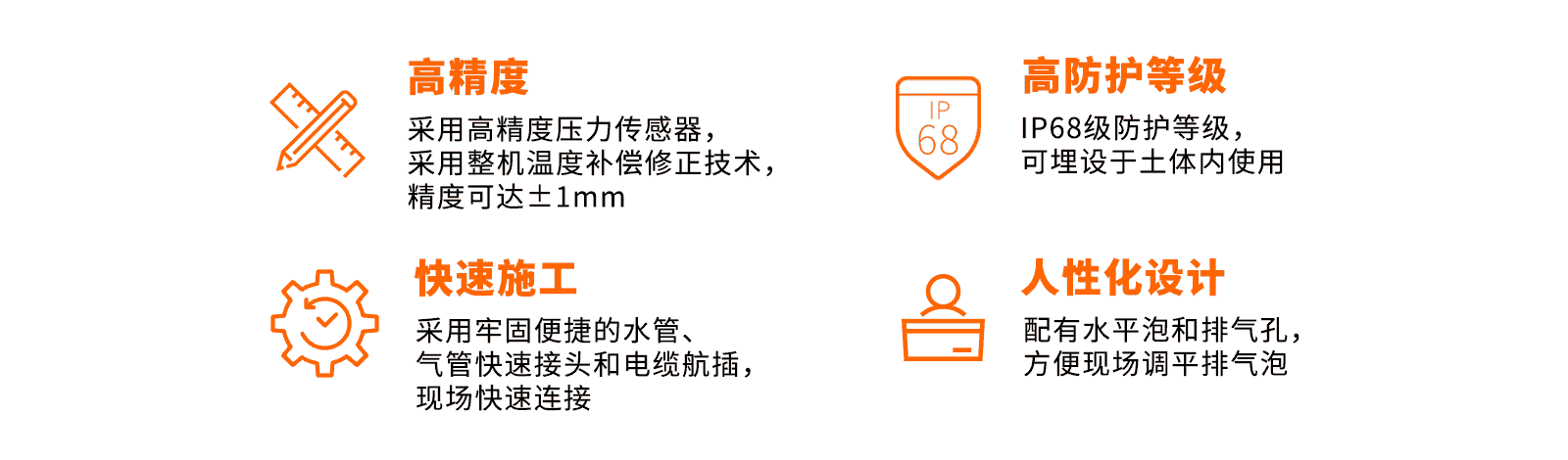 压差式沉降仪内部配有工业级的压力传感器,采用压差式原理,可安装于结构物的表层或深埋于土体,应用于建筑物、边坡、隧道、路基等建筑物的沉降监测。