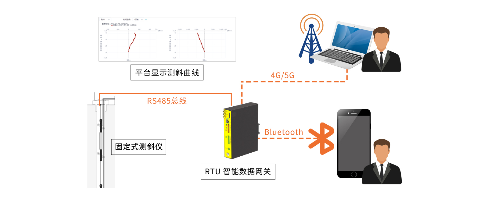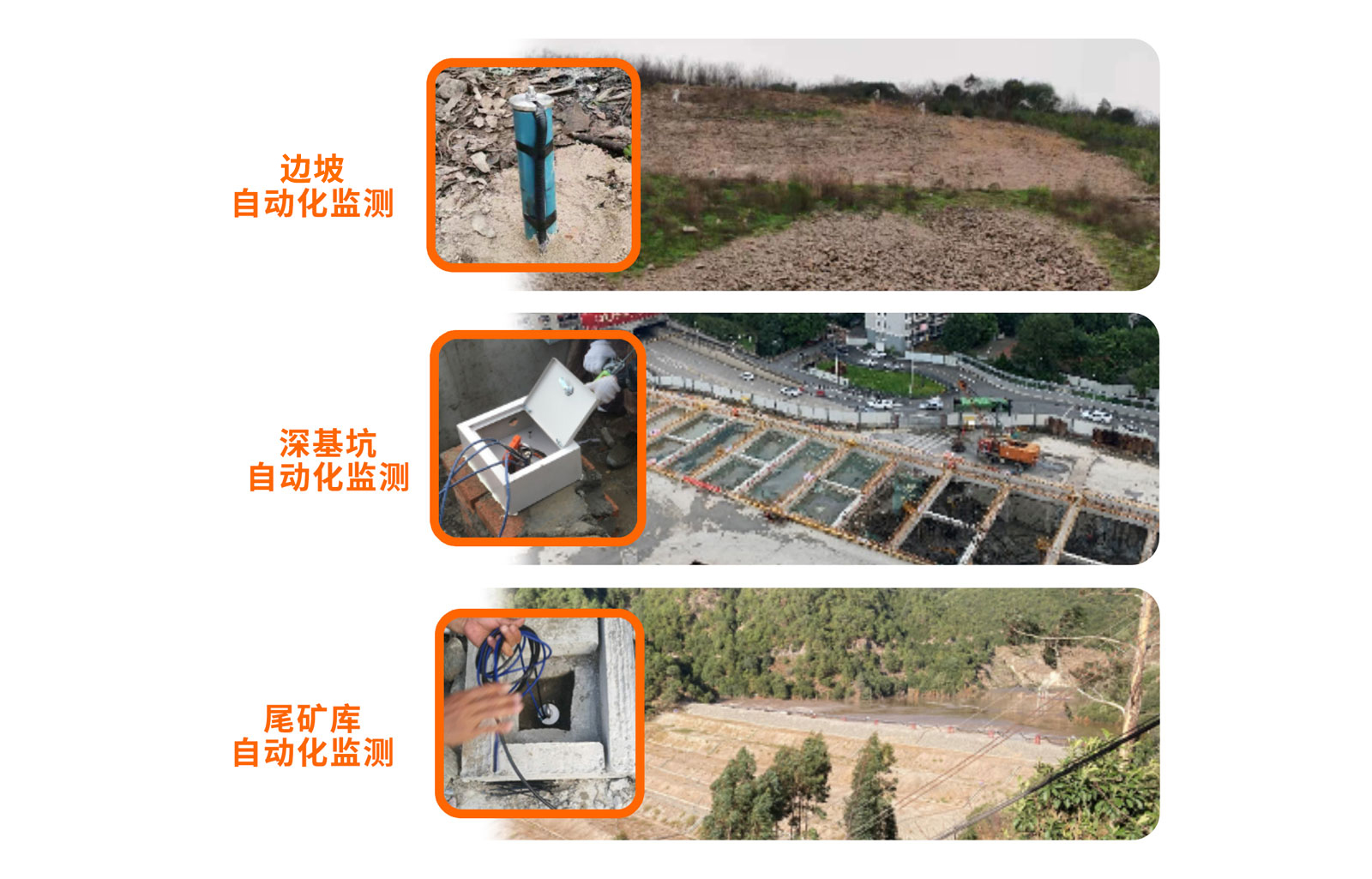 固定式测斜系统由一系列的测斜仪按照预设的间距串联而成,主要用于边坡、大坝、深基坑等场景的深层水平位移的长期自动化监测。