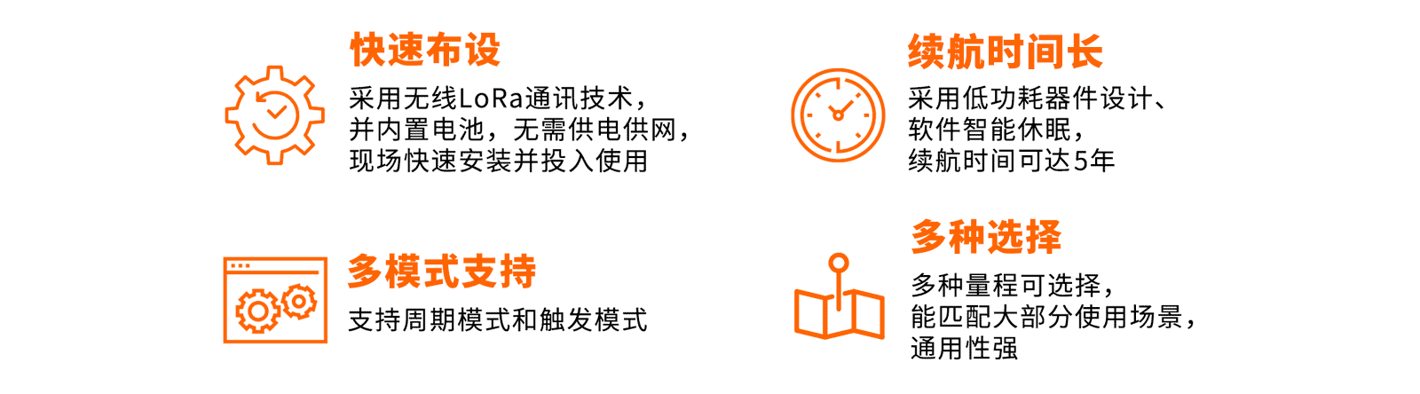 无需供电供网,续航时间长,多模式支持,多种安装方式。