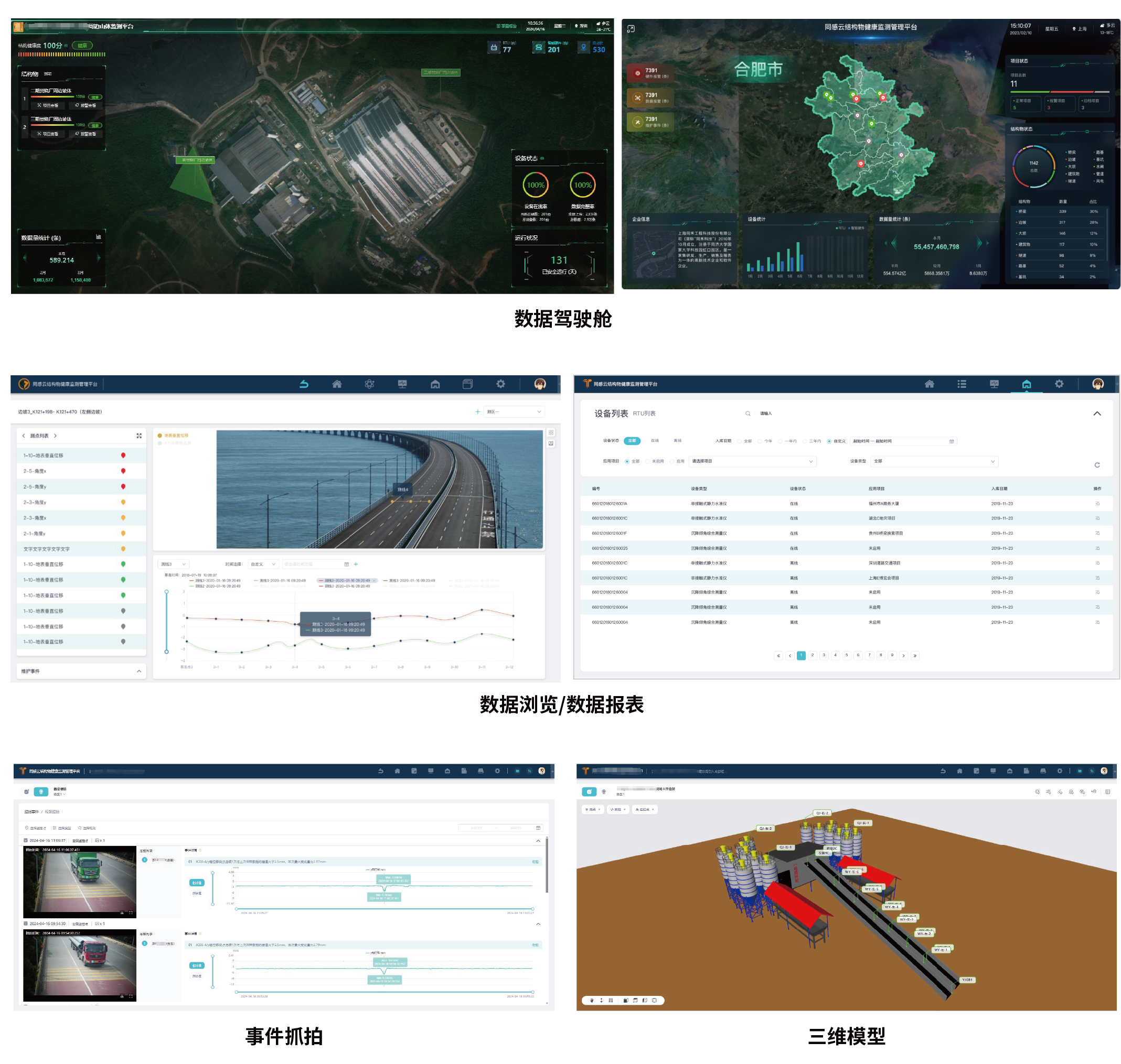 平台采用B/S架构,可对数据进行智能化管理,包含数据存储与分析、自动形成报表、结构物状态分析与报警、现场设备管理等多项功能。为用户提供真实的数据呈现,并针对结构物及结构物群构建安全模型,进行智能诊断和结构健康分析。