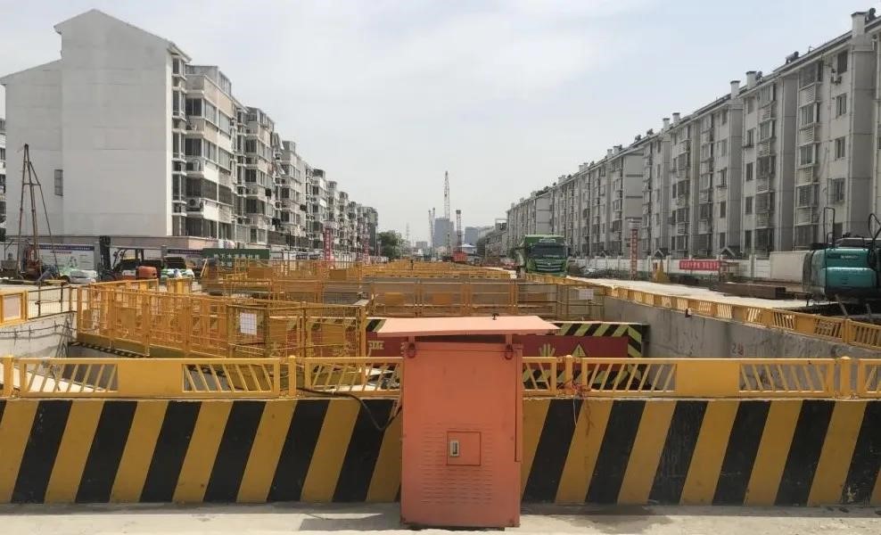 施工区域周边建筑物较多,施工环境十分复杂。车站北侧为天筑家园 3 栋 5 层住宅楼,车站南侧为天筑家园 4 栋 6 层住宅楼,为保护基坑周边小区民房,第六道支撑采用 的钢支撑轴力伺服系统。