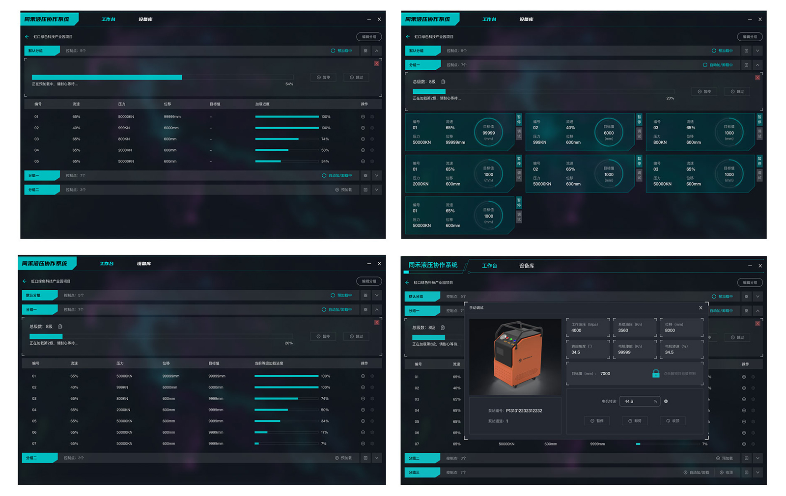 同步顶升系统由主机、数控泵站、液压缸、传感器、应用软件等部分组成,可根据项目使用需求灵活搭配,实现对大型结构物平推、顶升、提升、转体等安装、纠偏调整工作。精度高、同步误差小,智能便捷、自动化程度高,分布式结构安全可靠。